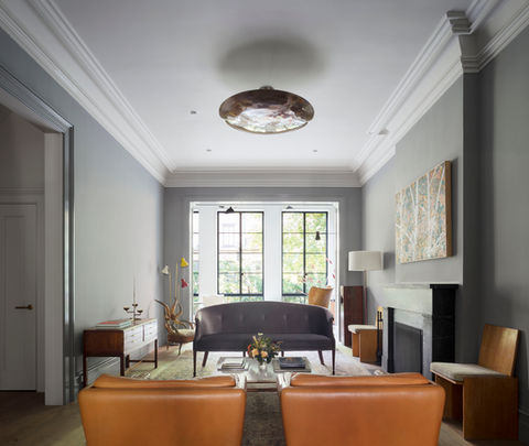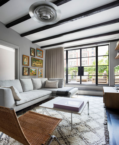This Gramercy Park Townhouse featured in Architectural Digest (September 2017) was renovated to open into the backyard from the kitchen.